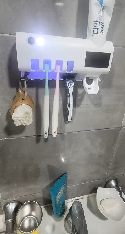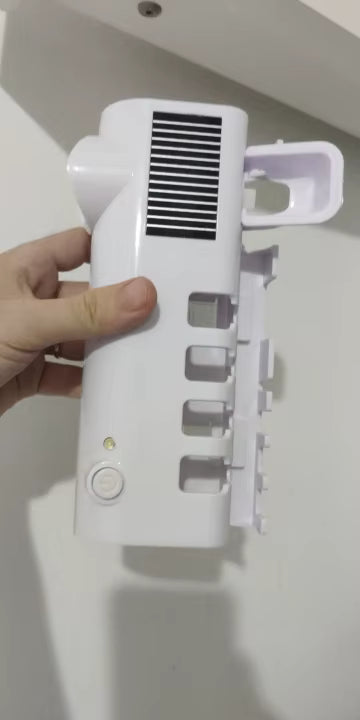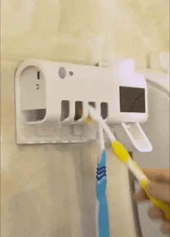 Introduce el tubo de pasta dental en el dispensador hasta que encaje bien. Para usarlo, solo presiona con el cepillo en la palanca y recibirás la dosis justa de crema, sin contacto manual.